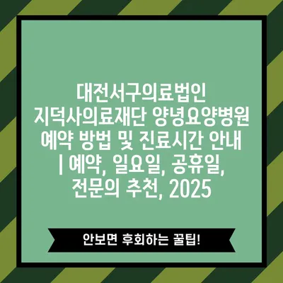 대전서구의료법인 지덕사의료재단 양녕요양병원 예약 방법 및 진료시간 공지 | 예약, 일요일, 공휴일, 전연락 추천, 2025 에 대해 자주 묻는 질문 TOP 5