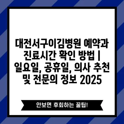 대전서구이김병원 예약과 진료시간 확인 방법 | 일요일, 공휴일, 의사 추천 및 전연락 정보 2025에 대해 알아보겠습니다.