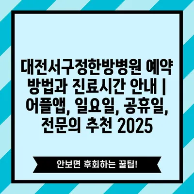 ✅ 대전서구정한방병원의 진료시간과 예약 방법을 자세히 알아보세요.