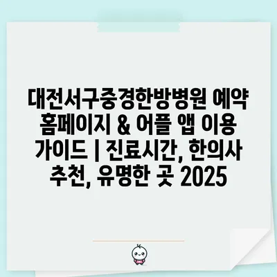 ✅ 대전서구중경한방병원 예약 방법과 진료 정보를 지금 바로 알아보세요.