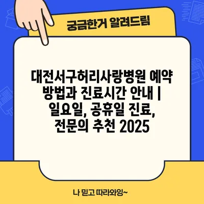 대전서구허리사랑병원 예약 방법과 진료시간 공지 | 일요일, 공휴일 진료, 전연락 추천 2025 에 대해 자주 묻는 질문 TOP 5