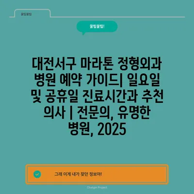 대전서구 마라톤 정형외과 병원 예약 가이드| 일요일 및 공휴일 진료시간과 추천 의사 | 전문의, 유명한 병원, 2025
