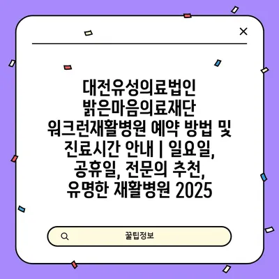 대전유성의료법인 밝은마음의료재단 워크런재활병원 예약 방법 및 진료시간 공지 | 일요일, 공휴일, 전연락 추천, 유명한 재활병원 2025 에 대해 자주 묻는 질문 TOP 5