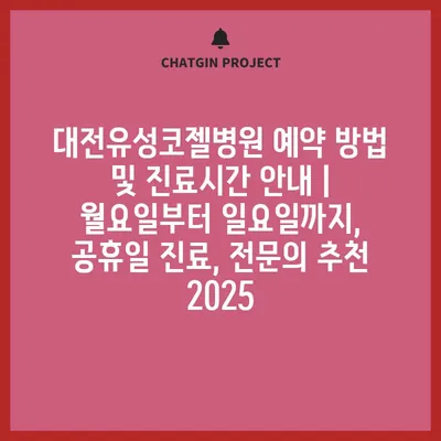 대전유성코젤병원 예약 방법 및 진료시간 공지 | 월요일부터 일요일까지, 공휴일 진료, 전연락 추천 2025에 대해 자주 묻는 질문 TOP 5