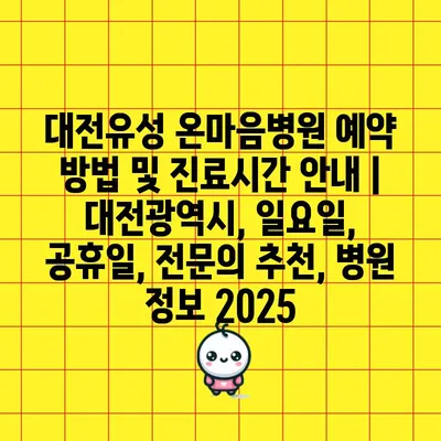 대전유성 온마음병원 예약 방법 및 진료시간 공지 | 대전광역시, 일요일, 공휴일, 전연락 추천, 병원 정보 2025 에 대해 자주 묻는 질문 TOP 5