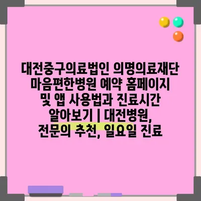 ✅ 대전중구의료법인 의명의료재단 마음편한병원 예약 방법을 자세히 알아보세요.