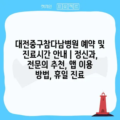 ✅ 대전중구참다남병원의 진료시간과 예약 방법을 알아보세요.