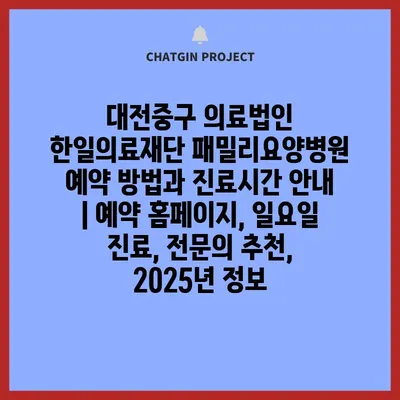 대전중구 의료법인 한일의료재단 패밀리요양병원 예약 방법과 진료시간 공지 | 예약 홈페이지, 일요일 진료, 전연락 추천, 2025년 정보 에 대해 자주 묻는 질문 TOP 5