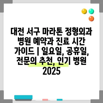 대전 서구 마라톤 정형외과 병원 예약과 진료 시간 설명서 | 일요일, 공휴일, 전연락 추천, 인기 병원 2025 에 대해 자주 묻는 질문 TOP 5