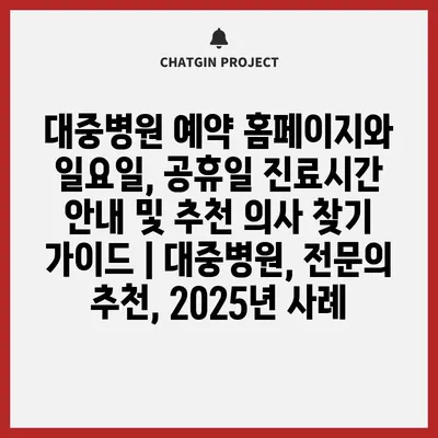 대중병원 예약 홈페이지와 일요일, 공휴일 진료시간 안내 및 추천 의사 찾기 가이드 | 대중병원, 전문의 추천, 2025년 사례