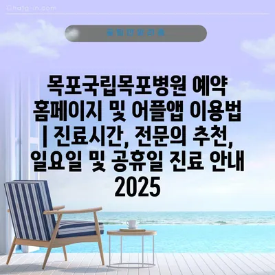 목포국립목포병원 예약 홈페이지 및 어플앱 이용법 | 진료시간, 전연락 추천, 일요일 및 공휴일 진료 공지 2025에 대해 알아보겠습니다.