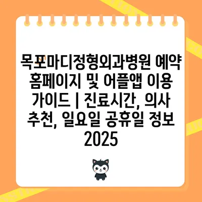 목포마디정형외과병원 예약 홈페이지 및 어플앱 이용 가이드 | 진료시간, 의사 추천, 일요일 공휴일 정보 2025