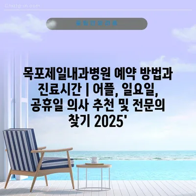 목포제일내과병원 예약 방법과 진료시간 | 어플, 일요일, 공휴일 의사 추천 및 전연락 찾기 2025′ 에 대해 자주 묻는 질문 TOP 5