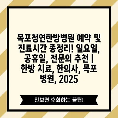 ✅ 목포청연한방병원의 예약 방법과 진료시간을 지금 바로 알아보세요!