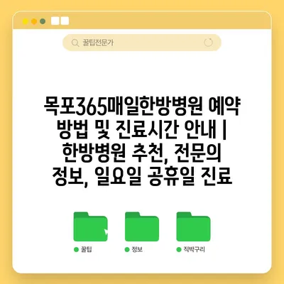 ✅ 목포365매일한방병원의 예약 방법과 진료시간을 알아보세요.