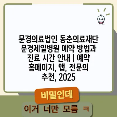 문경의료법인 동춘의료재단 문경제일병원 예약 방법과 진료 시간 공지 | 예약 홈페이지, 앱, 전연락 추천, 2025 에 대해 자주 묻는 질문 TOP 5