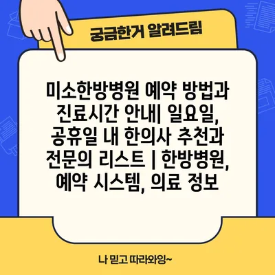 미소한방병원 예약 방법과 진료시간 안내| 일요일, 공휴일 내 한의사 추천과 전문의 리스트 | 한방병원, 예약 시스템, 의료 정보