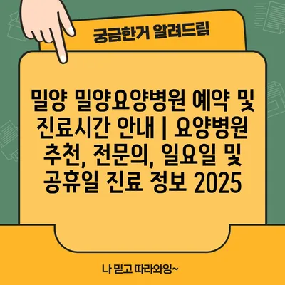 ✅ 2025년 밀양 요양병원 예약 방법과 진료시간을 알아보세요.