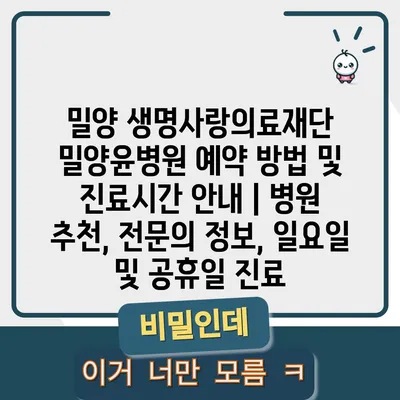 ✅ 밀양윤병원의 진료시간과 예약 방법을 지금 바로 알아보세요!