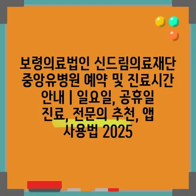 보령의료법인 신드림의료재단 중앙유병원 예약 및 진료시간 공지 | 일요일, 공휴일 진료, 전연락 추천, 앱 사용법 2025