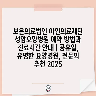 보은의료법인 아인의료재단 성암요양병원 예약 방법과 진료시간 공지 | 공휴일, 유명한 요양병원, 전연락 추천 2025에 대해 소개합니다.