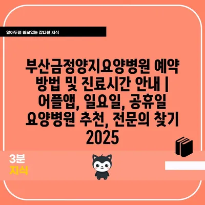 부산금정양지요양병원 예약 방법 및 진료시간 공지 | 어플앱, 일요일, 공휴일 요양병원 추천, 전연락 찾기 2025 에 대해 자주 묻는 질문 TOP 5