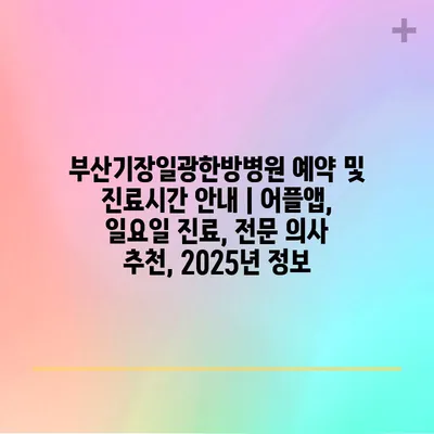 부산기장일광한방병원 예약 및 진료시간 공지 | 어플앱, 일요일 진료, 전문 의사 추천, 2025년 정보 에 대해 자주 묻는 질문 TOP 5