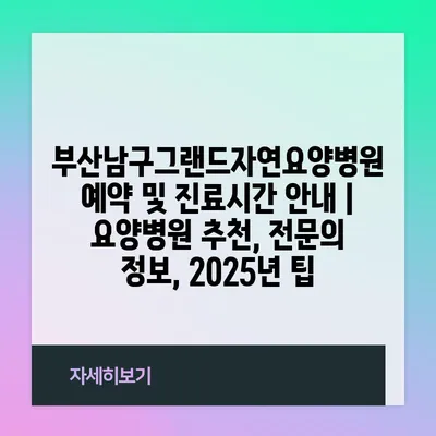 부산남구그랜드자연요양병원 예약 및 진료시간 공지 | 요양병원 추천, 전연락 정보, 2025년 팁 에 대해 자주 묻는 질문 TOP 5