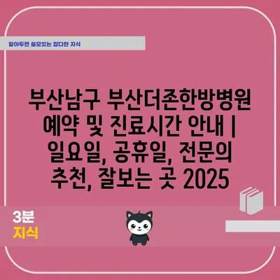 부산남구 부산더존한방병원 예약 및 진료시간 공지 | 일요일, 공휴일, 전연락 추천, 잘보는 곳 2025 에 대해 자주 묻는 질문 TOP 5