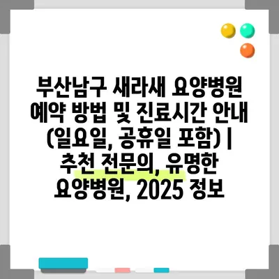 부산남구 새라새 요양병원 예약 방법 및 진료시간 공지 (일요일, 공휴일 포함) | 추천 전연락, 유명한 요양병원, 2025 정보 에 대해 자주 묻는 질문 TOP 5