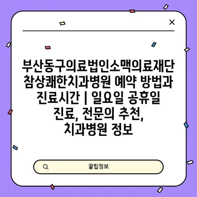 부산동구의료법인소맥의료재단 참상쾌한치과병원 예약 방법과 진료시간 | 일요일 공휴일 진료, 전연락 추천, 치과병원 정보 에 대해 자주 묻는 질문 TOP 5