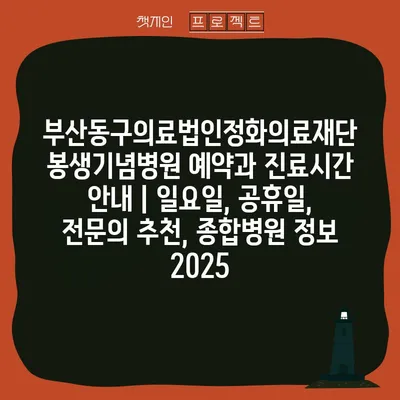✅ 부산동구 봉생기념병원의 예약 및 진료시간을 지금 바로 알아보세요!