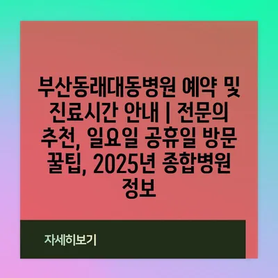 부산동래대동병원 예약 및 진료시간 공지 | 전연락 추천, 일요일 공휴일 방문 꿀팁, 2025년 종합병원 정보에 대해 자주 묻는 질문 TOP 5