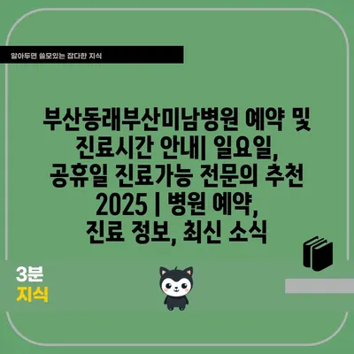 부산동래부산미남병원 예약 및 진료시간 공지| 일요일, 공휴일 진료가능 전연락 추천 2025 | 병원 예약, 진료 정보, 최신 소식 에 대해 자주 묻는 질문 TOP 5