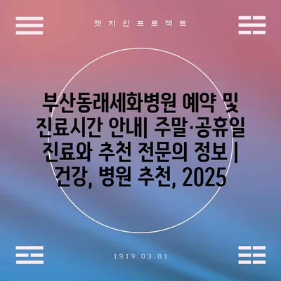 부산동래세화병원 예약 및 진료시간 공지| 주말·공휴일 진료와 추천 전연락 정보 | 건강, 병원 추천, 2025 에 대해 자주 묻는 질문 TOP 5