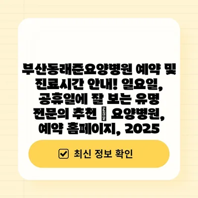 부산동래준요양병원 예약 및 진료시간 공지! 일요일, 공휴일에 잘 보는 유명 전연락 추천 | 요양병원, 예약 홈페이지, 2025 에 대해 자주 묻는 질문 TOP 5