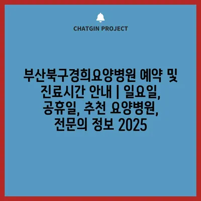 부산북구경희요양병원 예약 및 진료시간 공지 | 일요일, 공휴일, 추천 요양병원, 전연락 정보 2025 에 대해 자주 묻는 질문 TOP 5