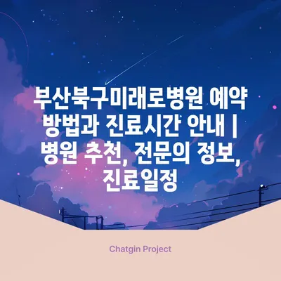 부산북구미래로병원 예약 방법과 진료시간 공지 | 병원 추천, 전연락 정보, 진료일정 에 대해 자주 묻는 질문 TOP 5