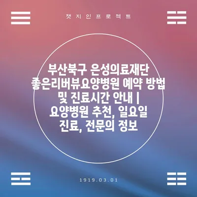 부산북구 은성의료재단 좋은리버뷰요양병원 예약 방법 및 진료시간 공지 | 요양병원 추천, 일요일 진료, 전연락 정보 에 대해 자주 묻는 질문 TOP 5