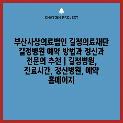 부산사상의료법인 길정의료재단 길정병원 예약 방법과 정신과 전연락 추천 | 길정병원, 진료시간, 정신병원, 예약 홈페이지 에 대해 자주 묻는 질문 TOP 5