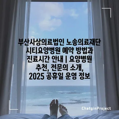 부산사상의료법인 노송의료재단 시티요양병원 예약 방법과 진료시간 공지 | 요양병원 추천, 전연락 소개, 2025 공휴일 운영 정보 에 대해 자주 묻는 질문 TOP 5