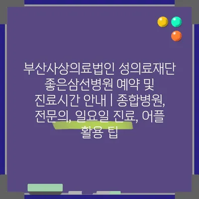 부산사상의료법인 성의료재단 좋은삼선병원 예약 및 진료시간 공지 | 종합병원, 전연락, 일요일 진료, 어플 활용 팁 에 대해 자주 묻는 질문 TOP 5