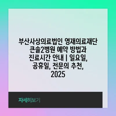 부산사상의료법인 영재의료재단 큰솔2병원 예약 방법과 진료시간 공지 | 일요일, 공휴일, 전연락 추천, 2025에 대해 자주 묻는 질문 TOP 5