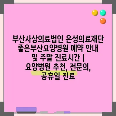 ✅ 좋은부산요양병원의 예약 방법과 주말 진료시간을 알아보세요!