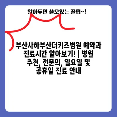 ✅ 부산사하부산더키즈병원의 예약 방법과 진료시간을 자세히 알아보세요.