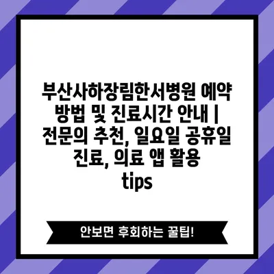 부산사하장림한서병원 예약 방법 및 진료시간 공지 | 전연락 추천, 일요일 공휴일 진료, 의료 앱 활용 tips