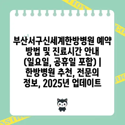 부산서구신세계한방병원 예약 방법 및 진료시간 공지 (일요일, 공휴일 포함) | 한방병원 추천, 전연락 정보, 2025년 업데이트 에 대해 자주 묻는 질문 TOP 5
