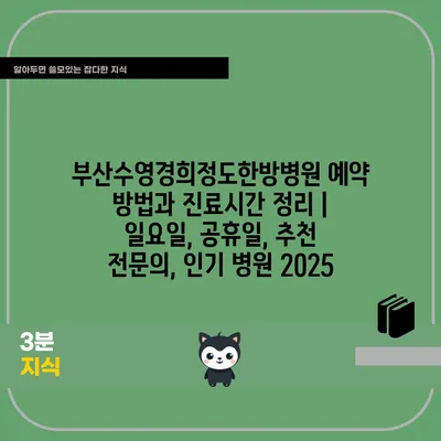 부산수영경희정도한방병원 예약 방법과 진료시간 정리 | 일요일, 공휴일, 추천 전연락, 인기 병원 2025 에 대해 자주 묻는 질문 TOP 5