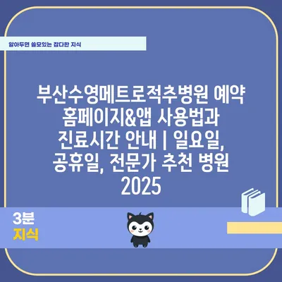 부산수영메트로적추병원 예약 홈페이지&앱 사용법과 진료시간 공지 | 일요일, 공휴일, 전문가 추천 병원 2025에 대해 알아보겠습니다.