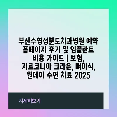 부산수영성분도치과병원 예약 홈페이지 후기 및 임플란트 비용 가이드 | 보험, 지르코니아 크라운, 뼈이식, 원데이 수면 치료 2025